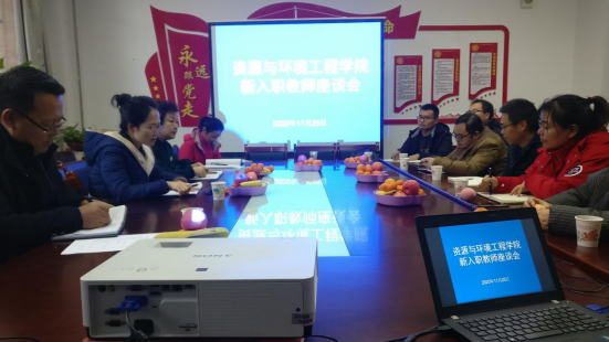 2020年11月25日,BV伟德官方网站召开了新入职教师座谈会。资环公司经理尤晓妮、副书记冯玉兰、副经理陈矛木、何栋材、胡良柏与近三年入职的15名教师参加了座谈会,会议由陈矛木主持。