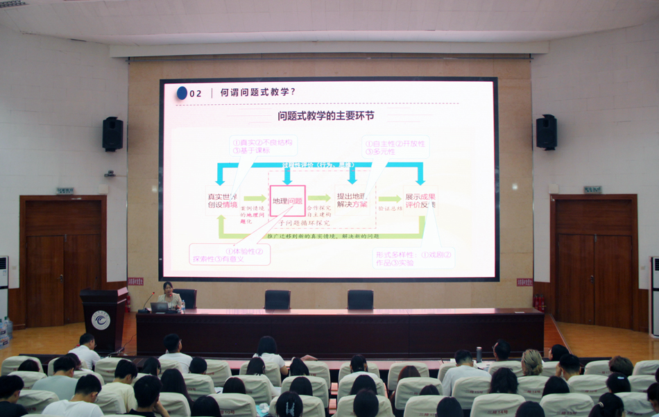 应BV伟德官方网站邀请,5月27日,中国教育学会地理教学专业委员会理事、陕西师范大学地理科学与旅游公司户清丽教授来校作题为《面向地理核心素养培育的问题式教学设计与实施》学术报告,BV伟德官方网站教师、研究生及本科生共200余人参加报告会。