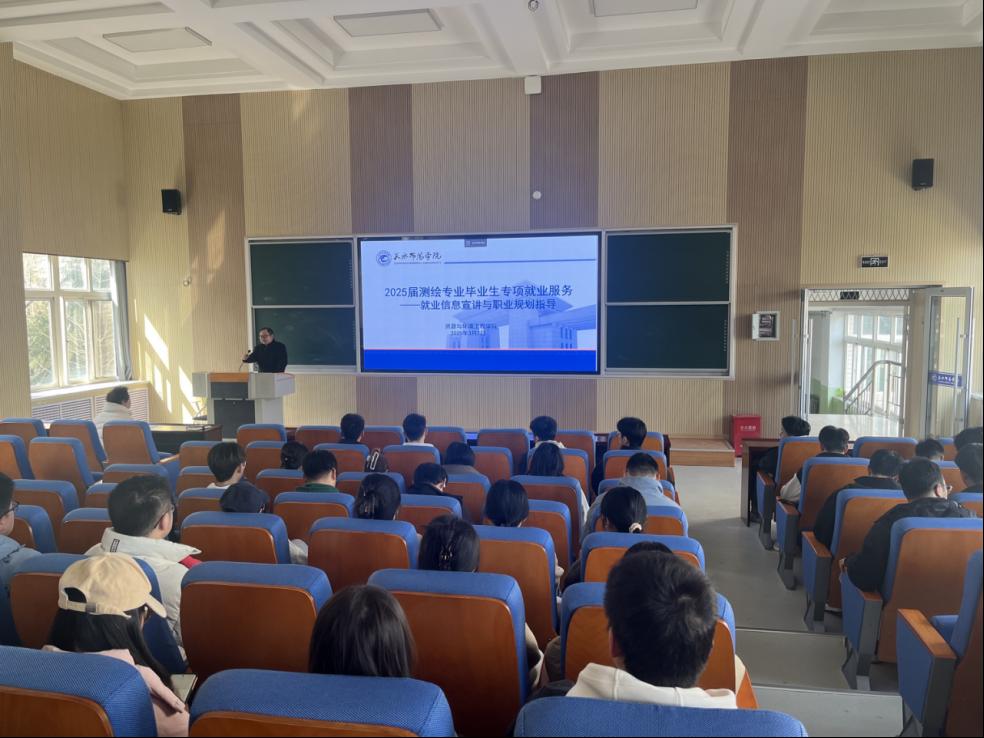 BV伟德官方网站根据近期获取的招聘信息,于2025年3月7日有针对性地组织测绘工程专业95名毕业生,开展专项就业指导宣讲会议。