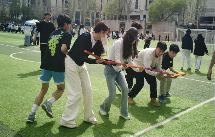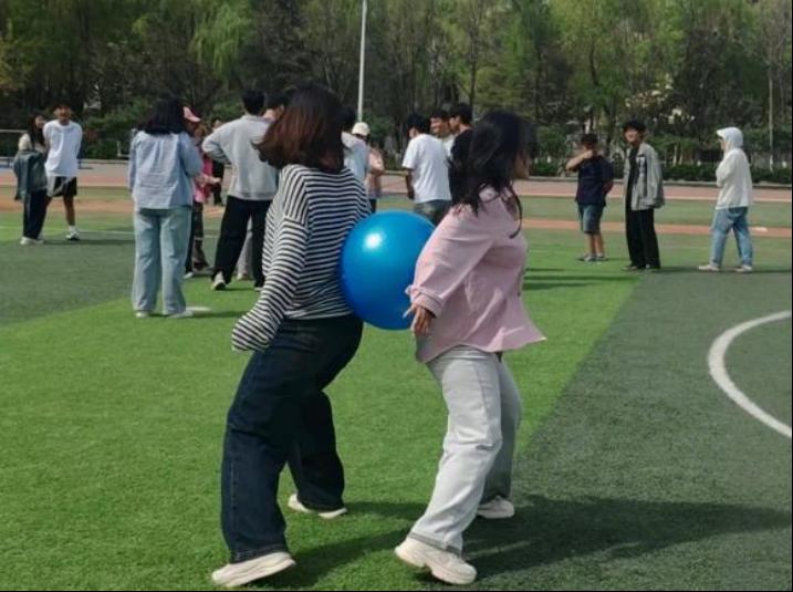 本次趣味运动会设置了丰富多样的项目,涵盖团队比赛和个人挑战,吸引了众多同学积极踊跃的报名参加。其中团队比赛包括同心鼓、齐心协力、珠行万里三个项目,其考验的是大家们的默契程度和协作能力。个人挑战项目包括摸石过河与背夹球,这则是需要同学们有敏捷的身手、快速的反应能力以及平衡能力。赛场上不断飘荡着同学们的欢声笑语,运动会精彩纷呈。