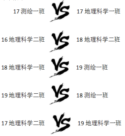 为加强班级凝聚力、增进班级同学间团结,公司于2019年11月9日下午2点在公司西操场举行了一场动人心魄的拔河比赛。参加此次比赛的班级有公司16级地理科学二班,17级、18级、19级所有班级。在紧张的备战中,预赛拉开帷幕。预赛分为五场,经抽签后对战班级如下: